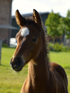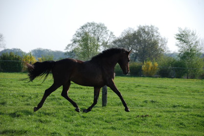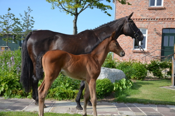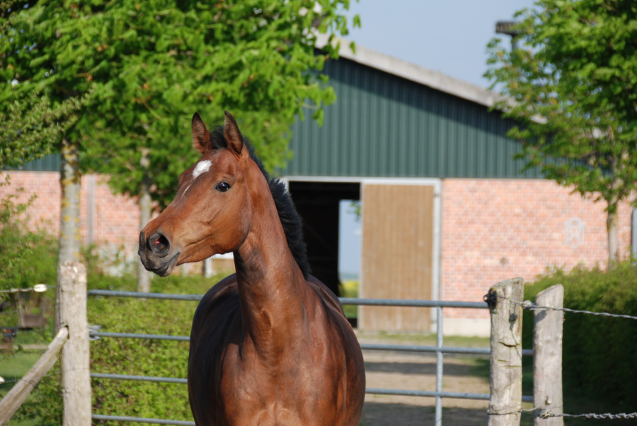 Beschreibung: Moderne, trockene Stute in der gewünschten Ausprägung des Edelblutes im großen Rahmen des modernen Sportpferdes.